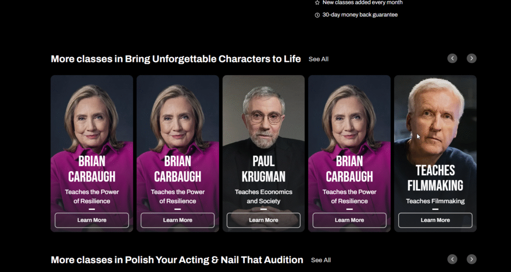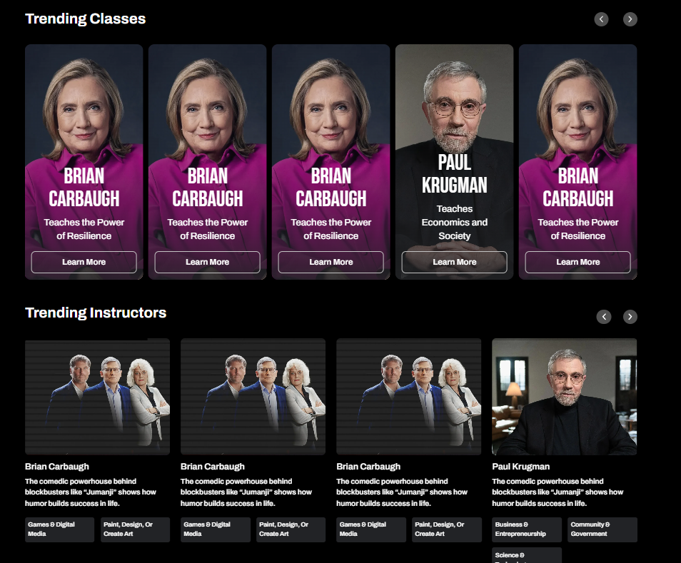 Presenting content (courses, live sessions, community features) in a Netflix-like grid without making the page too cluttered.