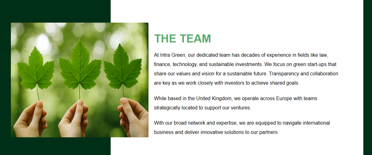 The custom development and design work position Intra.Green as a credible, modern platform in the sustainability/investment space.