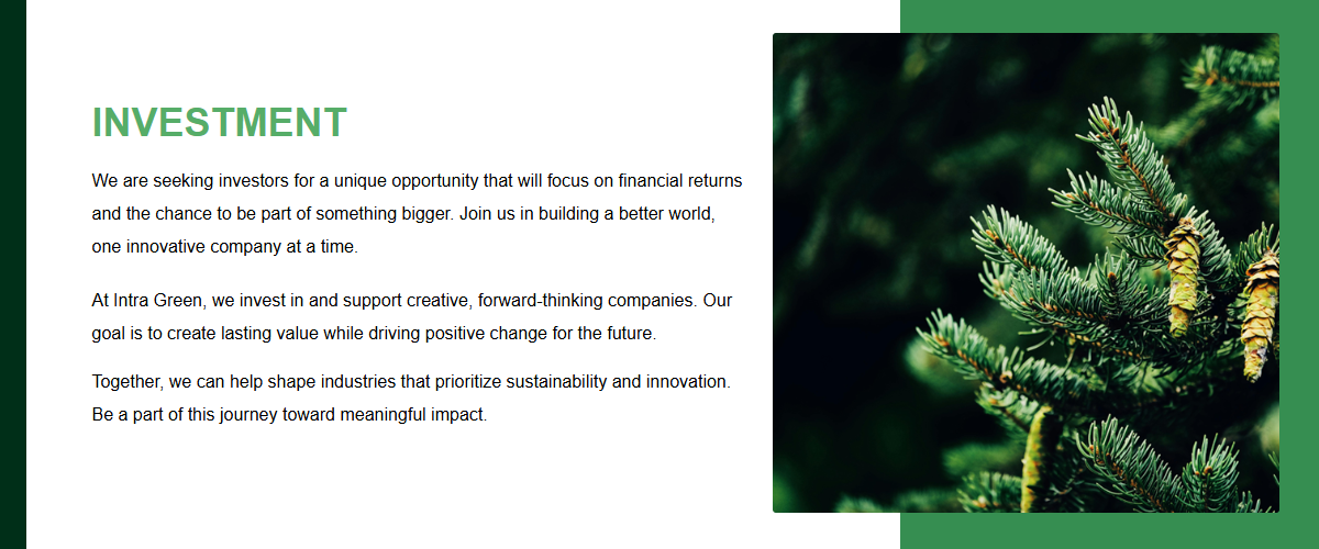 Delivered a polished, brand-forward corporate site that communicates Intra.Green’s mission and investment focus clearly.